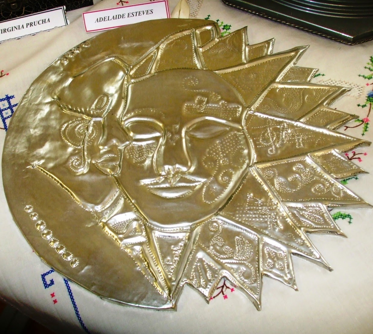 Moldura revestida de estanho e pedras
